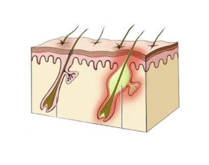 Afección común de la piel que ocurre cuando los folículos pilosos se inflaman. Al principio, se pueden apreciar pequeñas espinillas alrededor del crecimiento del vello.